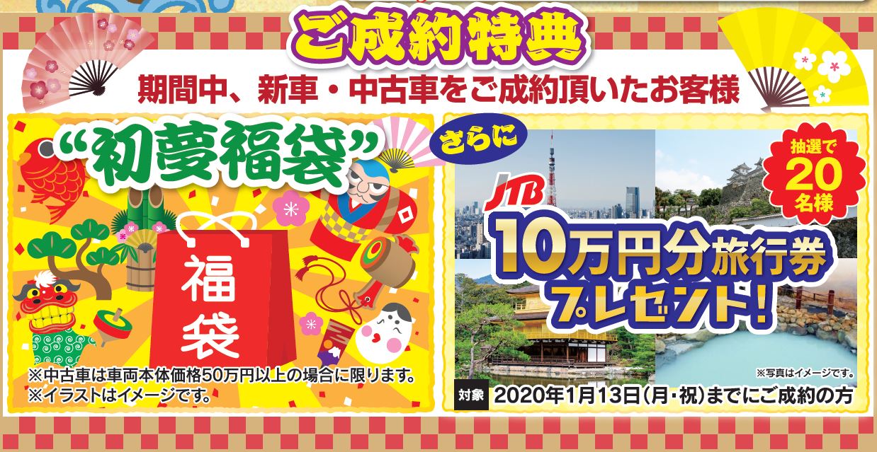 期間中に新車・中古車をご成約頂いたお客様に”初夢福袋”をプレゼント!