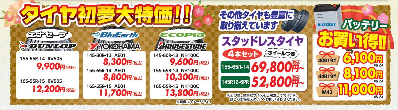 タイヤ・バッテリーも初夢大特価